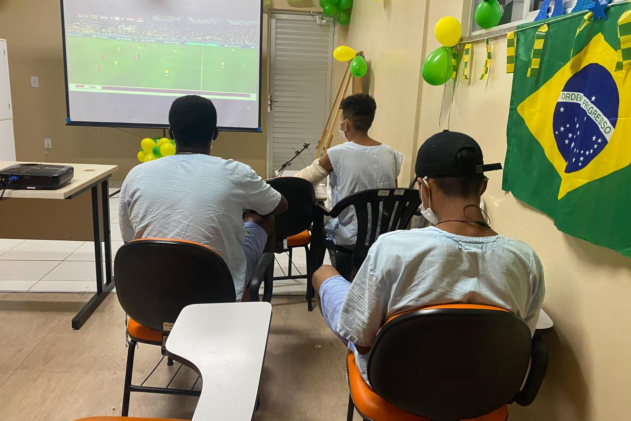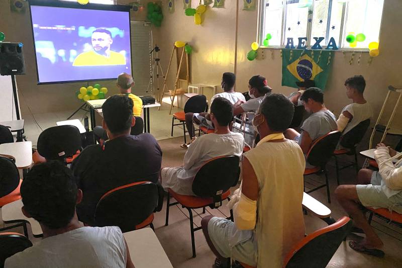 Segundo outro paciente, Paulo Henrique, “mesmo estando longe da família estou feliz em poder assistir ao primeiro jogo do Brasil com os outros pacientes”.