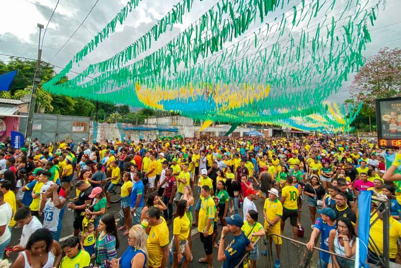 A orla recebeu um grande público no terceiro jogo da Seleção Brasileira na Copa do Qatar"Ver o Brasil jogando dá aquele friozinho no coração. Para mim, é uma satisfação imensa, ainda mais com a presença desse público incrível. É um dia muito especial. Eu já tinha a ideia de gravar, mas devido à agenda de shows tivemos que esperar passar o primeiro jogo. Com a letra pronta, liguei para a DJ Méury, que produziu. No segundo jogo, a música estava pronta, e agora estamos aqui lançando e fazendo muito barulho", disse MC Dourado.