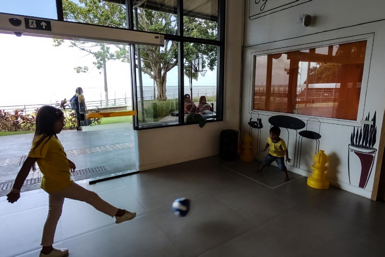 Antes de a bola rolar, o setor de Arte e Cultura montou atividades lúdicas bem temática para as crianças. Na área aberta do Bloco C, os reabilitando tiveram o “chute ao gol”, “o campinho da cognição” e o “passe ao gol”, todos estimulando a criança a trabalhar em equipe, a coordenação motora e a tomada de decisão.
