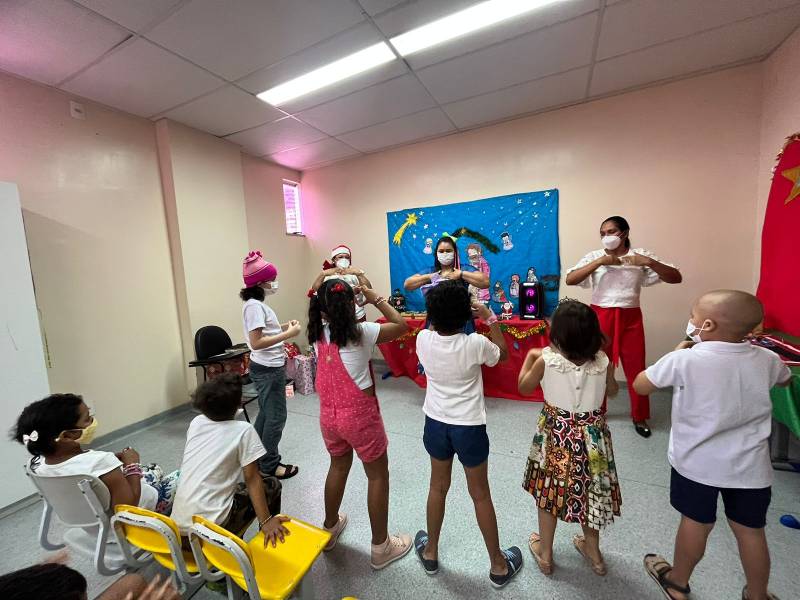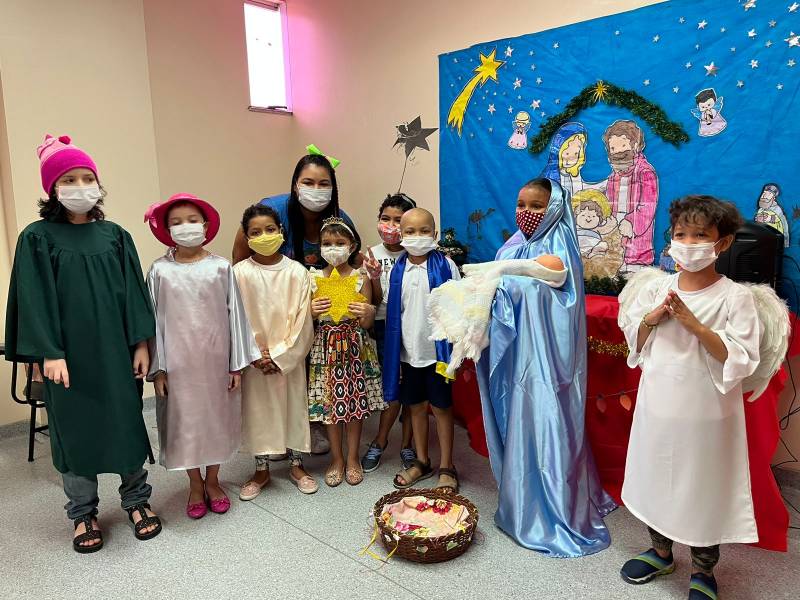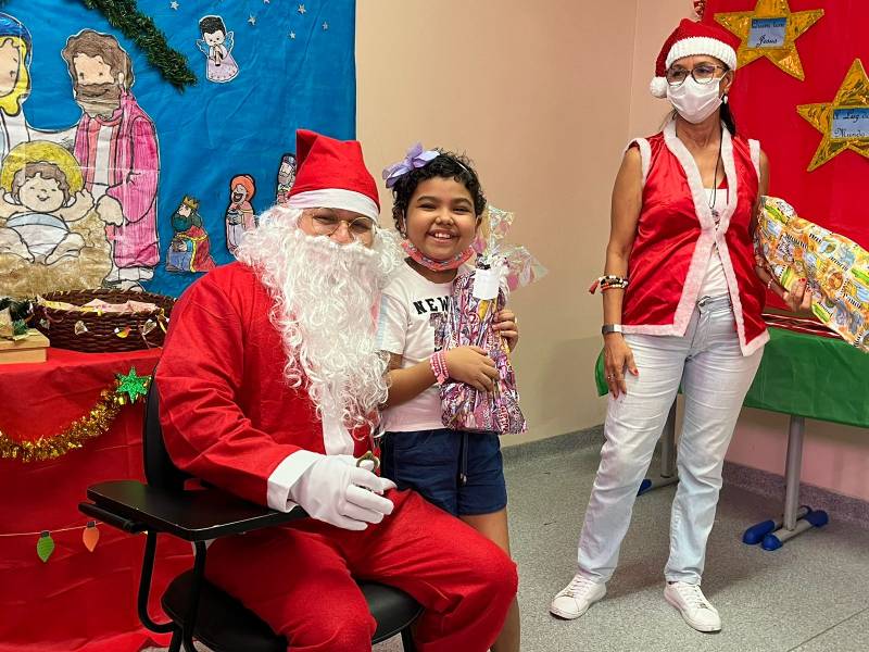Os brinquedos foram distribuídos nas clínicas de internação e na Classe Hospitalar Professor Roberto França, na sexta-feira (16). Na ocasião, os alunos-pacientes participaram de atividades lúdicas, aprenderam o verdadeiro significado do Natal, e encenaram as censa do presépio e do anúncio do anjo Gabriel à Maria sobre o nascimento de Jesus. Para completar o momento festivo, o Papai Noel chegou para entregar os presentes.