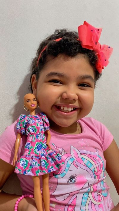 Evilla Luz mostra feliz sua Barbie carequinhaAo receber o presente das mãos do Papai Noel no Hospital Oncológico Infantil Octávio Lobo (Hoiol), em Belém, a menina Evilla Luz, 8 anos, abriu um largo sorriso. Ela sabia que dentro da embalagem havia o brinquedo tão esperado: uma boneca Barbie careca, do jeito que ela pediu. Evilla trata uma leucemia há mais de dois anos, e passou um período sem cabelo devido ao efeito colateral da quimioterapia. Na época, apesar do desafio adicional ela não se abateu. Via sempre sua beleza suplantar o sofrimento. Hoje, com o cabelo curto, a autoestima se mantém elevada e o sorriso espontâneo continua iluminando o rosto da menina.