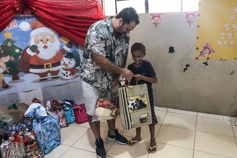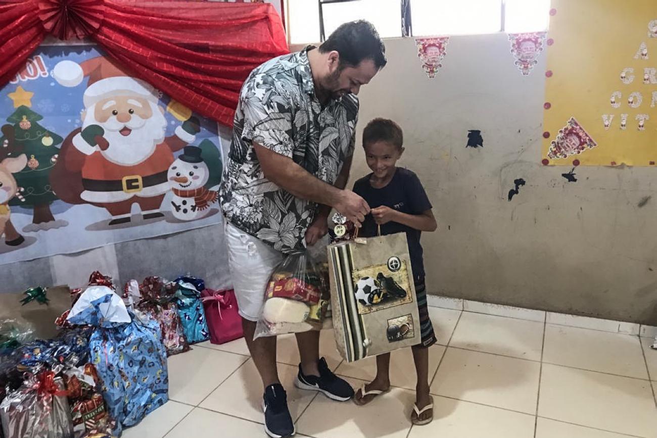 A professora Oneide da Silva, de 59 anos, comenta como gratificante é participar do Natal dessas crianças. “Já são oito anos que estamos nessa jornada com os padrinhos solidários e os alunos da nossa escola. Agradecemos a cada um”, comentou a educadora.