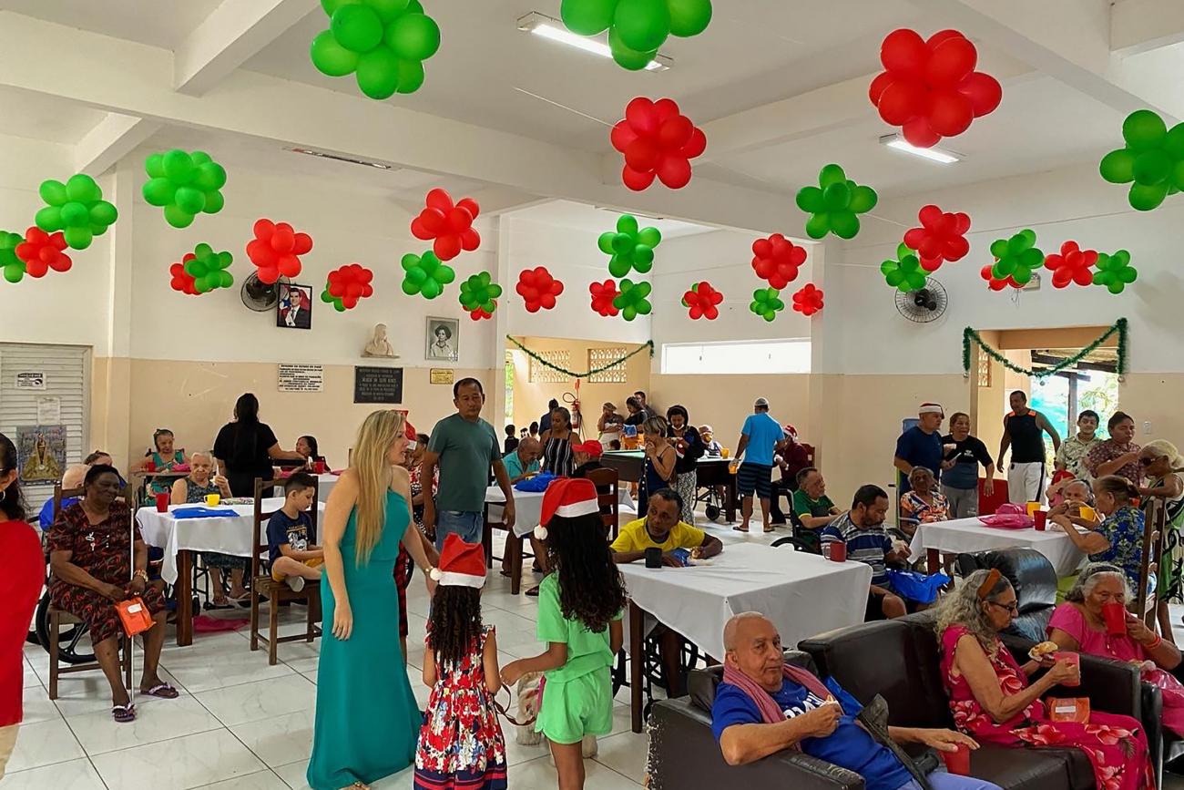 A presença do Papai Noel foi outra atração na comemoração natalina no Lar da ProvidênciaO abrigo estadual para idosos “Lar da Providência” realizou na manhã desta quinta-feira (22) sua tradicional comemoração natalina, envolvendo usuários residentes e trabalhadores. Os idosos acolhidos e o corpo técnico do abrigo participaram da confraternização na companhia de convidados especiais: os filhos dos funcionários da unidade.