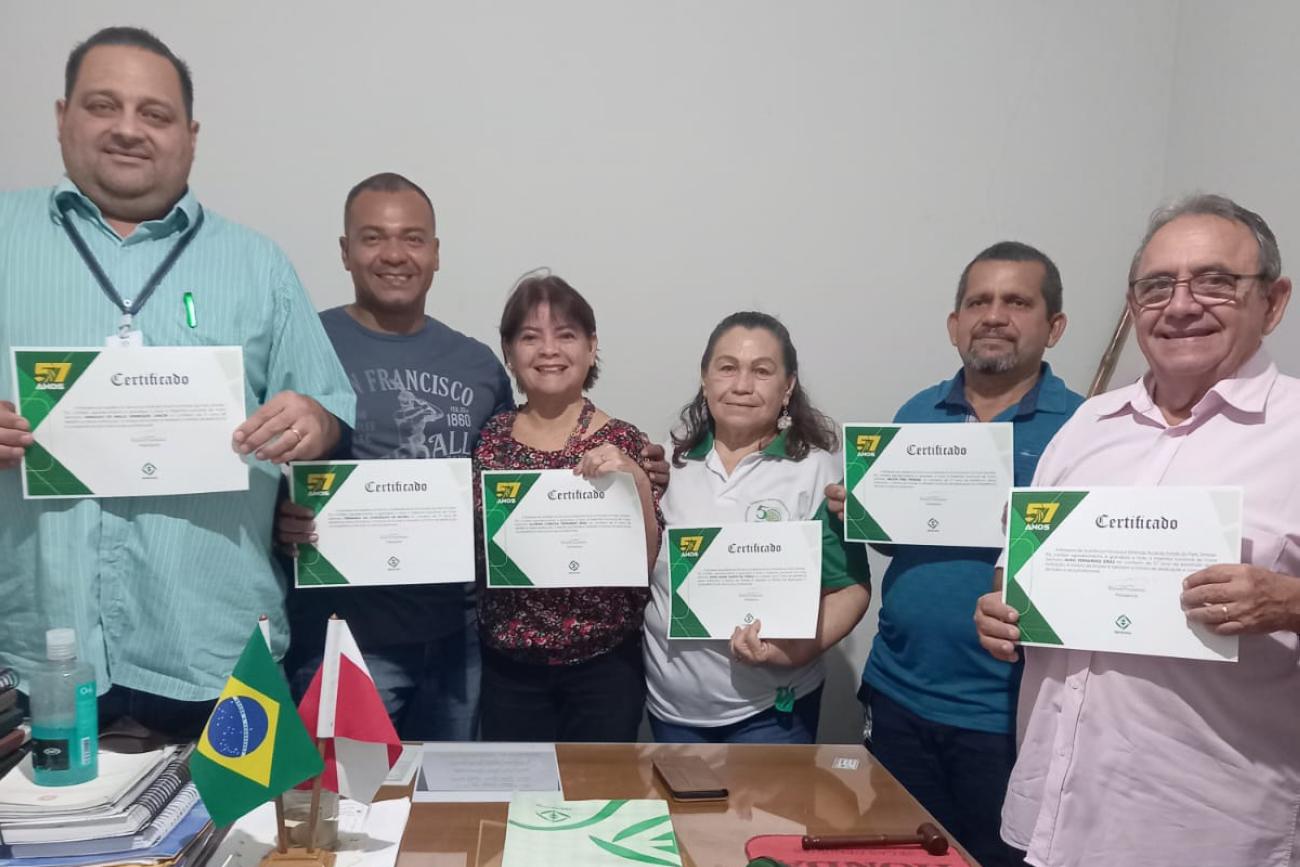 O presidente Rosival Possidônio (d) e um dos servidores que receberam certificado de reconhecimentoEntrega de medalhas e certificados, e histórias de sucesso e palavras de gratidão encerraram a programação festiva pelos 57 anos da Empresa de Assistência Técnica e Extensão Rural do Estado do Pará (Emater). Tendo como protagonistas os mais de mil extensionistas e 65 mil famílias atendidas em todos os 144 municípios, uma cerimônia interna ocorreu na quinta-feira (22), no auditório do Escritório Central da empresa, em Marituba, na Região Metropolitana de Belém, consagrou uma jornada que desde 1965 ajuda a transformar a realidade da Amazônia paraense. Batizada originalmente como Assistência Rural do Pará (Acar), a Emater atual foi criada em 03 de dezembro.