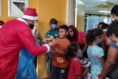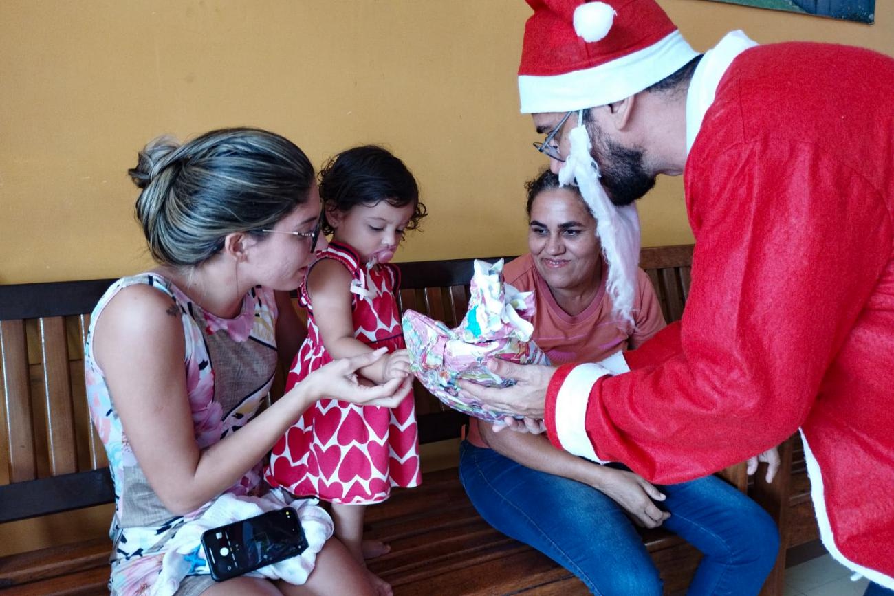 A ação contou com a participação do “Papai Noel”, que entregou pessoalmente os presentes para as crianças em atendimento no ambulatório, na recepção central e nas clínicas de internação.