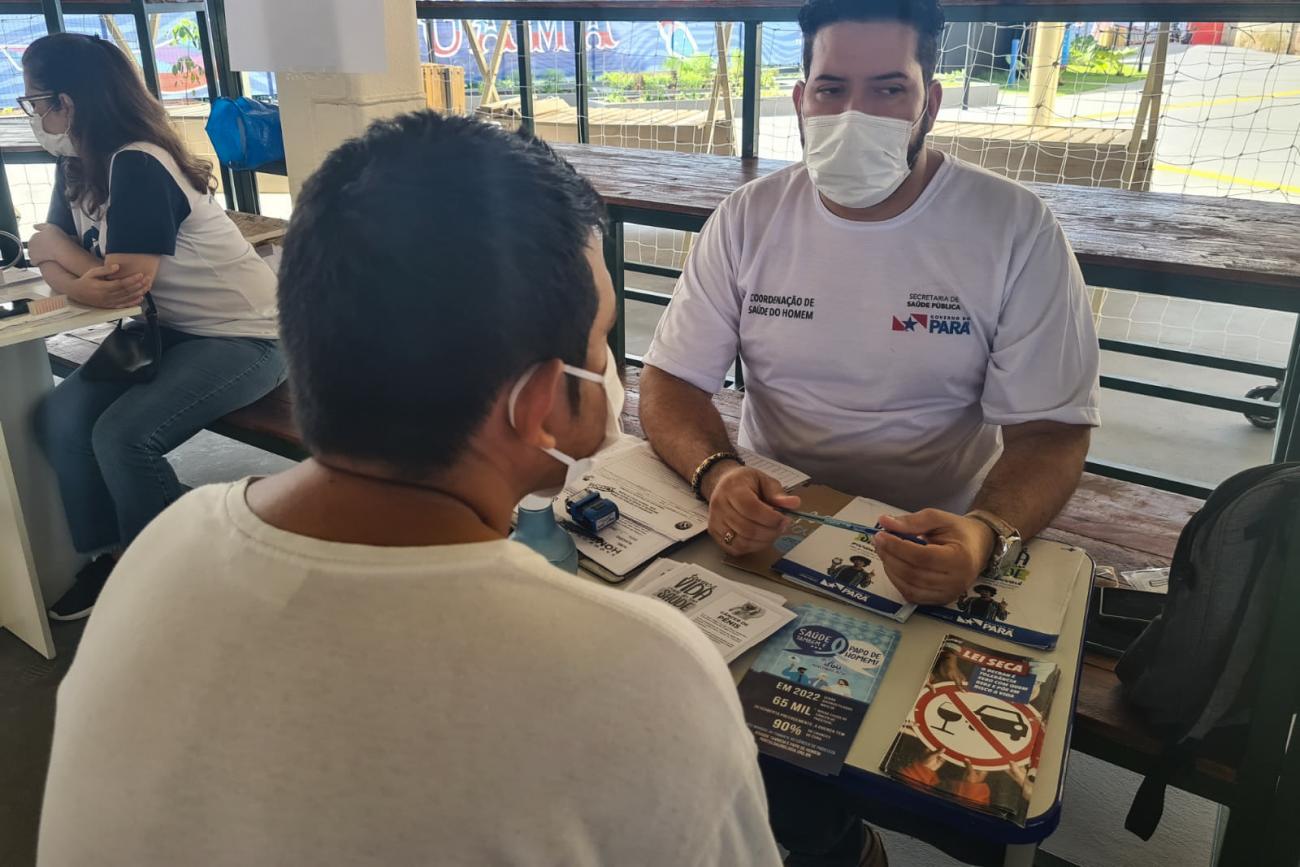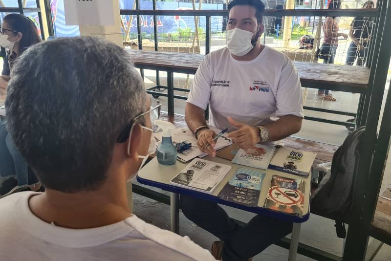 Morador em atendimento pela Equipe da Coordenação Estadual de Atenção Oncológica e do TerPaz Neste Dia Mundial de Combate ao Câncer, 4 de fevereiro, a Secretaria de Estado de Saúde Pública (Sespa), por meio da Coordenação Estadual de Atenção Oncológica (CEAO) e do Programa Territórios pela Paz (TerPaz), promoveu ações de de saúde na UsiPaz do Guamá. Houve a oferta de agendamento de consultas e exames e, ainda, orientações, para conscientizar a população sobre o câncer e alertar sobre a importância do diagnóstico precoce da doença.