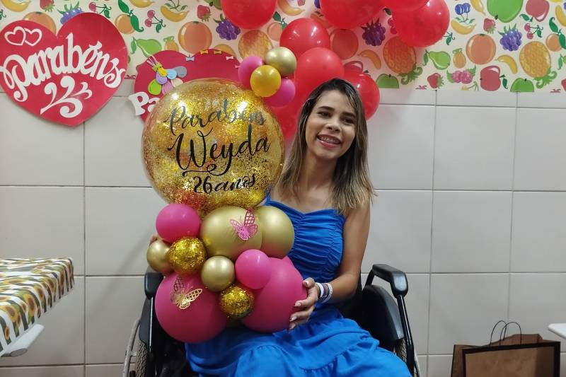 Weyda Lopes, 26 anos, após um acidente de trânsito precisou de procedimento cirúrgico. Há uma semana está internada no HGT. Na segunda-feira (06), ela fez aniversário, e a tristeza por não comemorar com familiares e amigos foi substituída pelo sentimento de gratidão, principalmente por estar viva e sendo assistida pela equipe multiprofissional do Hospital.