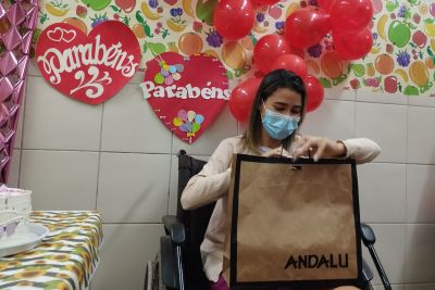 A paciente Weyda Lopes ganhou bolo, afeto e cuidado da equipe de profissionais do HGTO Hospital Geral de Tailândia (HGT), por meio do Grupo de Trabalho de Humanização (GTH), realizou mais uma edição do projeto “Comemorando com Alegria”, voltado para celebrar o aniversário de usuários internados nas Clínicas, em condições de interação. O objetivo é ampliar a relação entre a unidade e os pacientes, contribuindo para melhoria da autoestima ao oferecer acolhimento, descontração e alegria para reduzir a tensão no ambiente hospitalar.