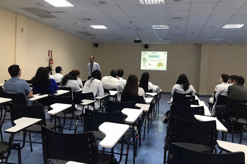 Profissionais da unidade apresentaram as políticas, os fluxos e o funcionamento do Hospital. Além disso, durante o evento, os estudantes puderam conhecer uma parte das instalações, os serviços oferecidos pela unidade e o perfil de atendimento do HRAS.
