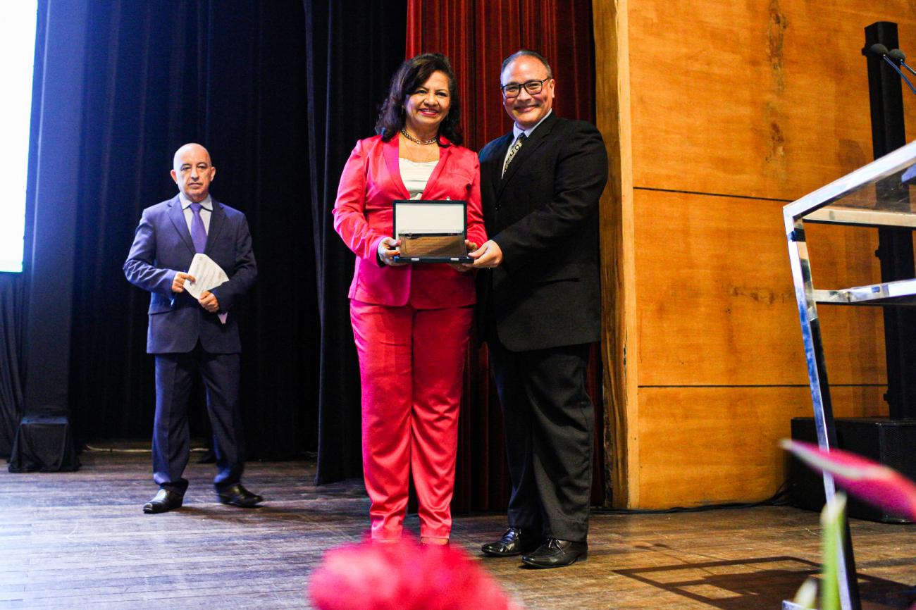 A vice-reitora da Universidade do Estado do Pará (Uepa), Ilma Pastana, também integrante do dispositivo de honra, foi homenageada por Alzinei Simor, em reconhecimento a sua trajetória dentro da Academia. “Gratidão é um sentimento difícil de definir. É um dos mais fáceis de se sentir, e entre tantas formas, às vezes, nos confundimos em nomear, mas sabemos que simplesmente não é possível viver sem ser grato. Por isso, eu quero agradecer por todos esses anos que a senhora passou conosco, labutando diariamente e noturnamente, e coordenando com maestria e sabedoria”, ressaltou o coordenador.
