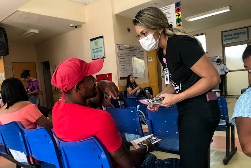 Nesta semana, a equipe multiprofissional composta por enfermeiras, técnicos em Enfermagem e psicólogo ficou responsável pela realização dos testes e abordagem do tema para usuários que aguardavam na recepção do Pronto Atendimento. A equipe também entregou preservativos e material informativo.
