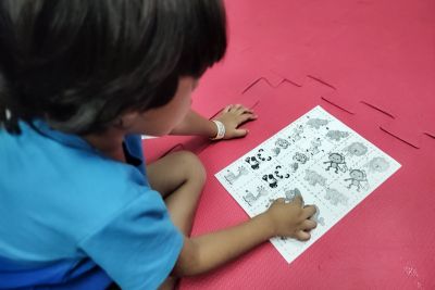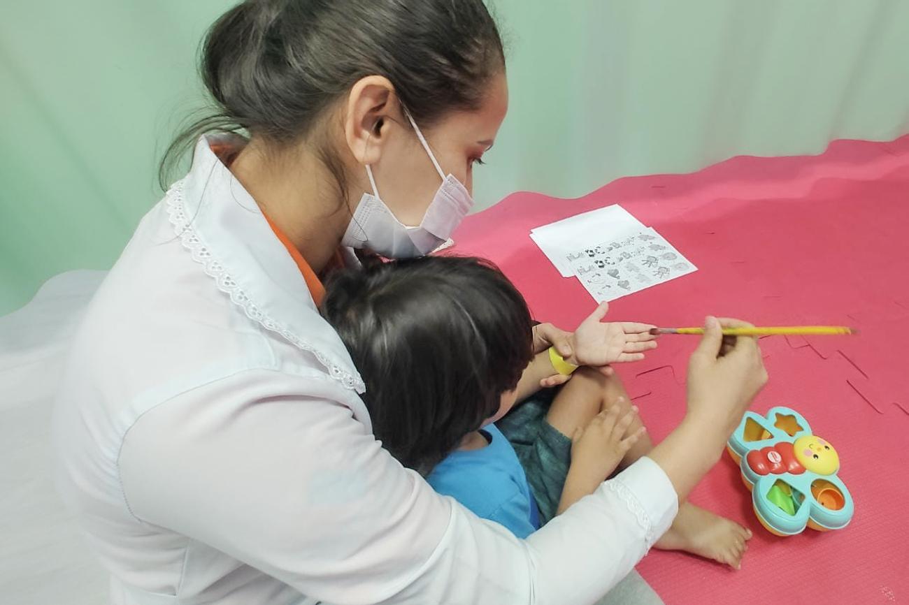 Além de trabalhar os aspectos cognitivos, a atividade estimula demandas sensoriais. É o caso do pequeno Gabriel Trindade, de três anos. Diagnosticado com autismo, o menino vem sendo acompanhado no CIIR há cerca de seis meses e, de acordo com a terapeuta ocupacional Julieth Gonçalves, o quadro clínico dele tem o complemento da coordenação motora fina.