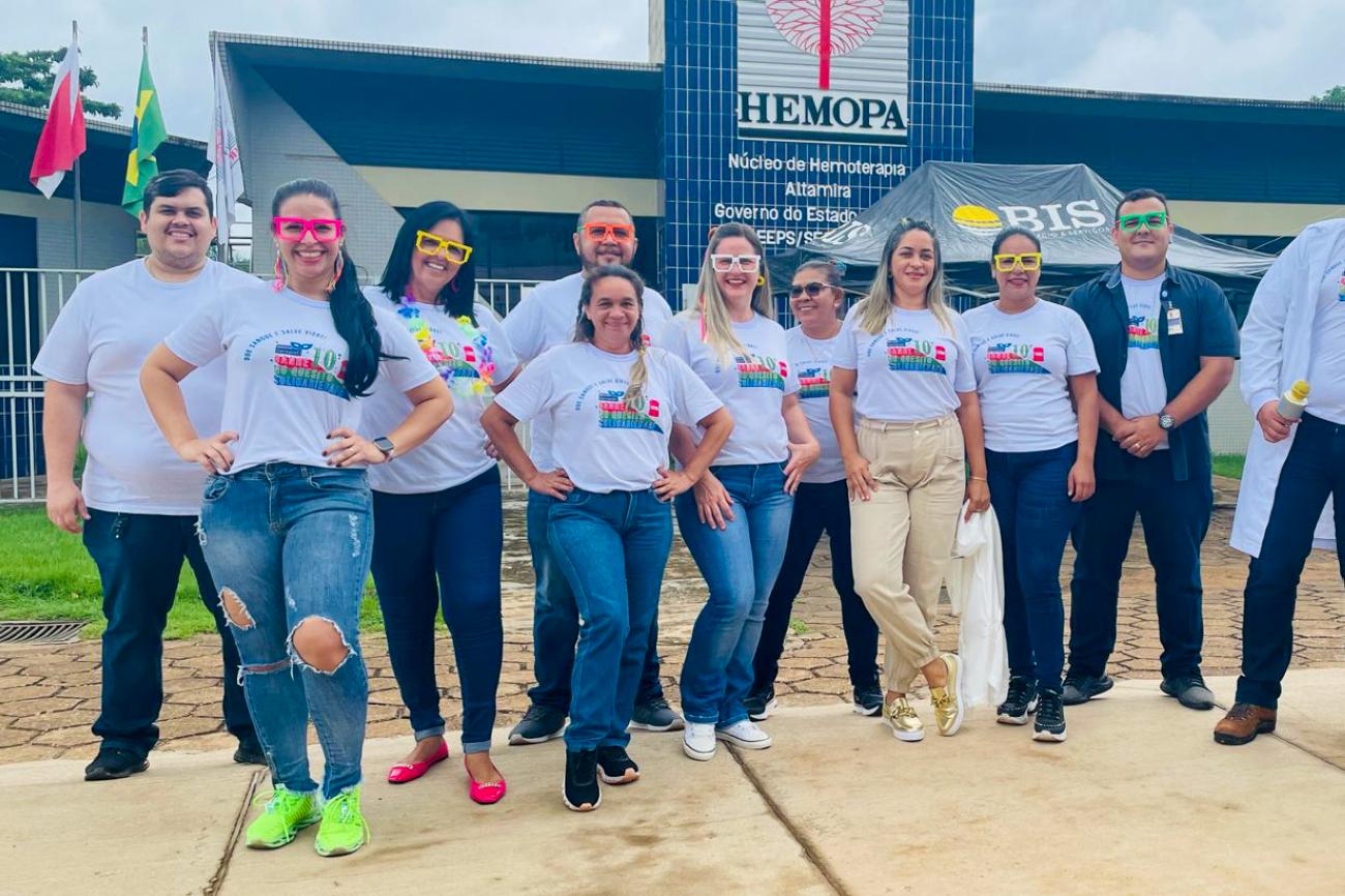 Equipe de Saúde e voluntários entusiastas da doação de sangue posam orgulhosos para a foto A Fundação Hemopa comemora a adesão da população, potencialmente doadora de sangue, à campanha “Neste carnaval, ganhe 10 no quesito solidariedade. Doe sangue. Salve vidas”. De 1º a 18 deste mês, o hemocentro registrou 6.228 coletas de sangue que vão beneficiar mais de 24.900 pacientes internados nas rede hospitalares pública e privada. São vidas que necessitam de transfusão para sobreviver ou melhorar a condição do paciente.