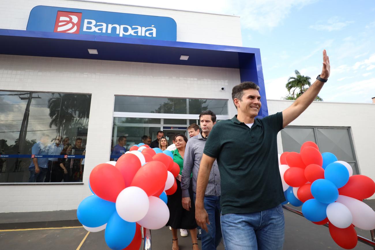 Governador Helder Barbalho em frente a mais uma agência do Banpará no interior do Estado