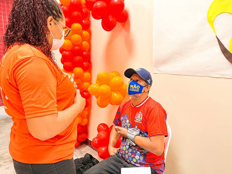 Aconselhamento - a ação da equipe do CTRS incluiu distribuição de materiais informativos, aferição de pressão arterial e orientação sobre cuidados com os rins e manutenção de hábitos saudáveis, principalmente entre diabéticos, obesos, hipertensos, tabagistas e idosos, que são grupos de risco.