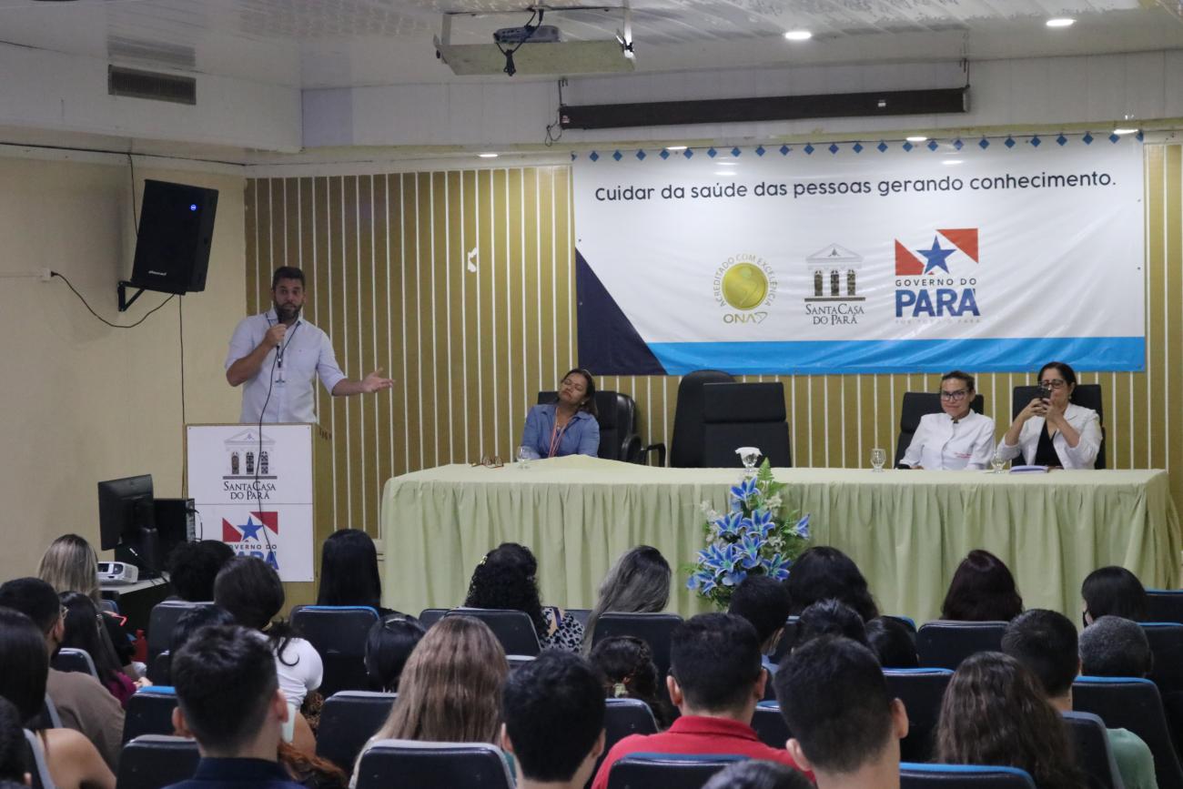Conhecimento - Bruno Carmona, presidente da Fundação Santa Casa, falou sobre um dos pilares da instituição, que é "cuidar das pessoas gerando conhecimento’. Esse é o lema da Fundação, que se busca fazer com excelência. A instituição é um hospital público, e um orgulho em atender 100% SUS, cumprindo todas as políticas públicas determinadas pela Sespa (Secretaria de Estado de Saúde Pública)". Ele acrescentou que "toda a estrutura dada por esse hospital é para que desenvolvam a habilidade de vocês, para saírem daqui excelentes especialistas. O conhecimento de vocês virá em forma de recompensa e reconhecimento”.