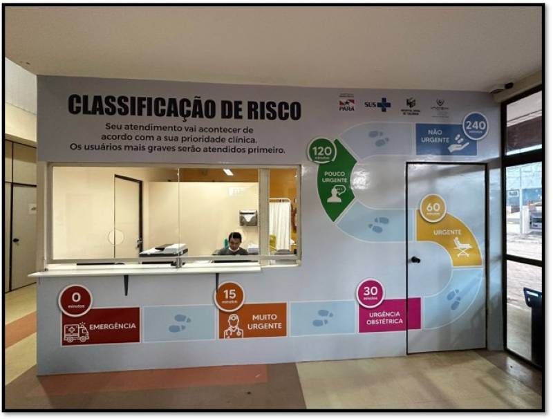 Neste mês, o Hospital Geral de Tailândia (HGT) realizou a plotagem do adesivo que descreve o fluxo de atendimento do setor de Classificação de Risco aos usuários do serviço. Com uma média diária de atendimento de 200 pacientes no Pronto Atendimento (P.A), média de 117 partos/mês, a gestão do hospital identificou a necessidade de elucidar a população sobre as mudanças no setor.