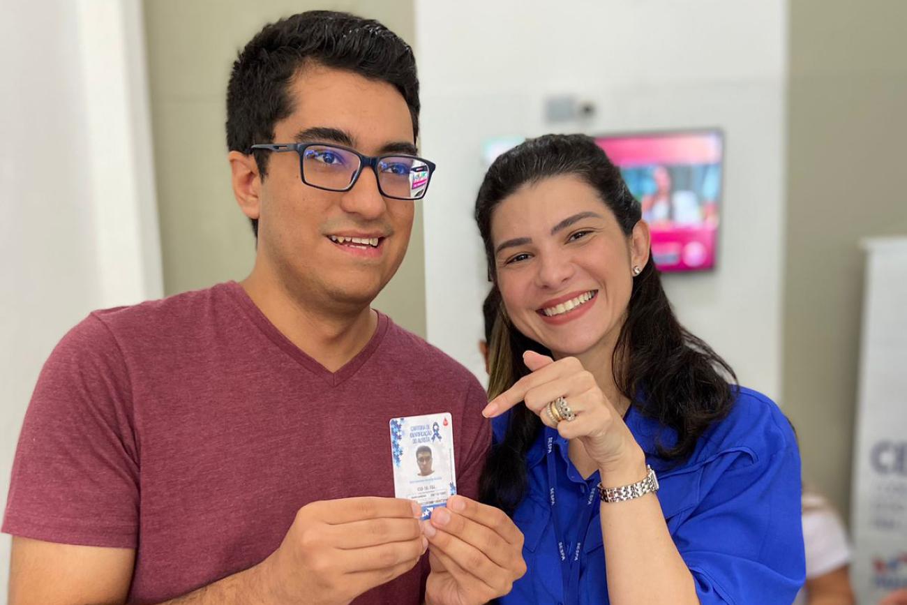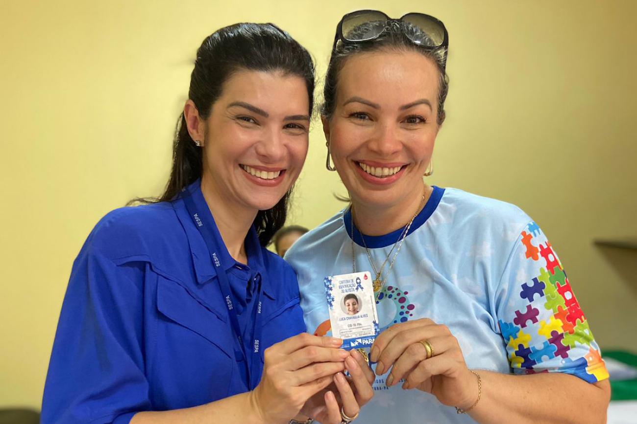 A coordenadora Nayara Barbalho ao lado de um beneficiado com a carteira de identificaçãoA Secretaria de Estado de Saúde Pública (Sespa), por meio da Coordenação Estadual de Políticas para o Autismo (Cepa), entregou 133 carteiras de identificação da Pessoa com Transtorno do Espectro do Autismo (CIPTEA), nesta quarta-feira (15), nos municípios de Barcarena, Abaetetuba e Igarapé-Miri, na Região de Integração Tocantins.