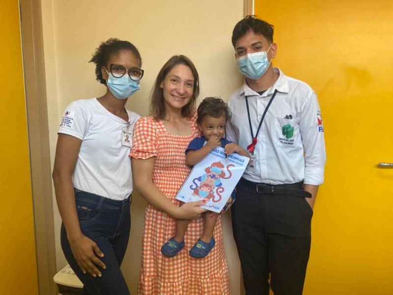 Em alusão ao Dia Mundial da Infância, comemorado no próximo dia 21, o GTH, para proporcionar descontração e reduzir o sofrimento, junto a alguns pequenos usuários internados, criaram um pequeno livro de histórias, onde as crianças e seus pais construíam uma narrativa e os colaboradores, Ismaína Santos, Líder de Atendimento e o Assessor de Comunicação, Pedro Amorim, realizavam as ilustrações. O projeto deu início em fevereiro deste ano, finalizando no início de março.