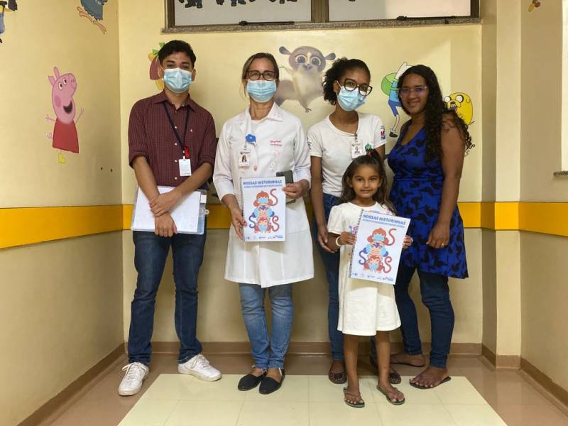 Durante esta semana, a equipe do Grupo de Trabalho de Humanização (GTH) entregou livros de histórias em quadrinho narrados pelos próprios pequenos usuários internados na unidade, com o auxílio de seus pais, às demais crianças em atendimento no hospital. Dentre as narrativas, as histórias contam casos pessoais das crianças, onde mostraram os seus interesses, gostos e aprendizados.