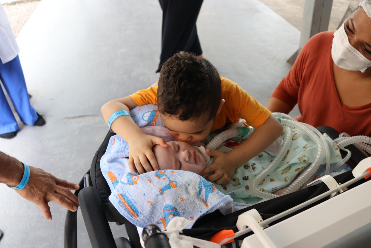 Para que o encontro dos irmãos fosse possível, profissionais de várias especialidades, que atendem na UTI pediátrica, reuniram esforços para que tudo ocorresse com segurança e bem estar para os dois irmãos, já que o menino de 4 anos não podia entrar na UTI e o bebê só poderia sair se estivesse bem estável.