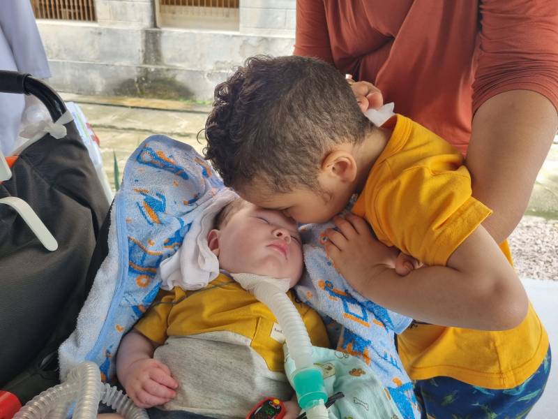 Quase todo mundo já assistiu, mesmo que em um vídeo, ao encontro de um irmão mais velho com o caçula que acaba de nascer. São momentos de emoção e alegria para toda a família. Com Pedro Henrique, de quatro anos, também foi assim. Mas com uma carga de emoção a mais, pois o encontro dos irmãos só foi possível depois de 5 meses do nascimento de Antonio, que por conta de problemas de saúde ao nascer, precisou ficar internado na UTI da Santa Casa e ainda precisa de aparelhos para respirar e se alimentar.