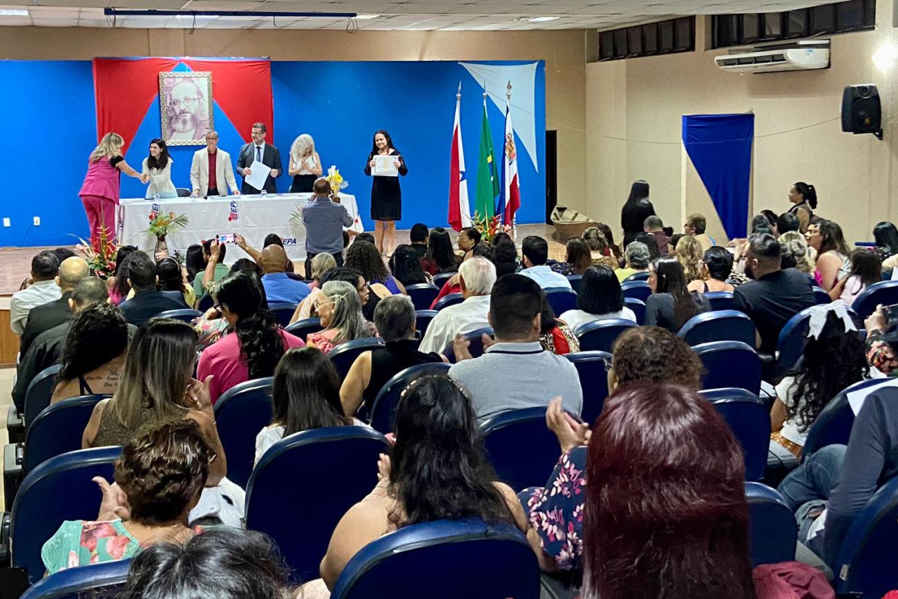 Solenidade de formatura da turma de pós-graduação, no Auditório Paulo Freire, da UepaMais de 200 alunos receberam diploma do curso de pós-graduação em "Transtorno do Espectro Autista: Intervenções multidisciplinares em contexto intersetoriais", em cerimônia realizada no Auditório Paulo Freire, no campus da Universidade do Estado do Pará (Uepa), na noite desta sexta-feira (17).