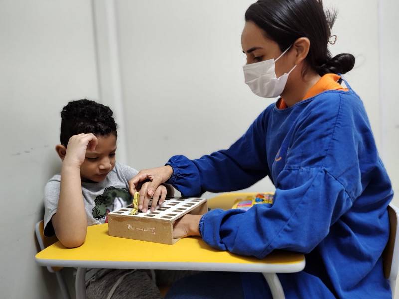 Estímulo aos usuários pavimenta os caminhos da autonomiaOs usuários também são assistidos no Centro Especializado em Reabilitação (CER IV), com serviços de saúde em quatro especialidades: visual, física, auditiva e intelectual. Em um desses polos, o CER IV, as terapias realizadas hoje incluíram atividades com pintura para aprimorar a coordenação motora fina e a estimulação precoce, que garante socialização aos usuários, além de treino para ampliar o repertório de brincadeiras, e pedidos e estratégias de autorregulação.