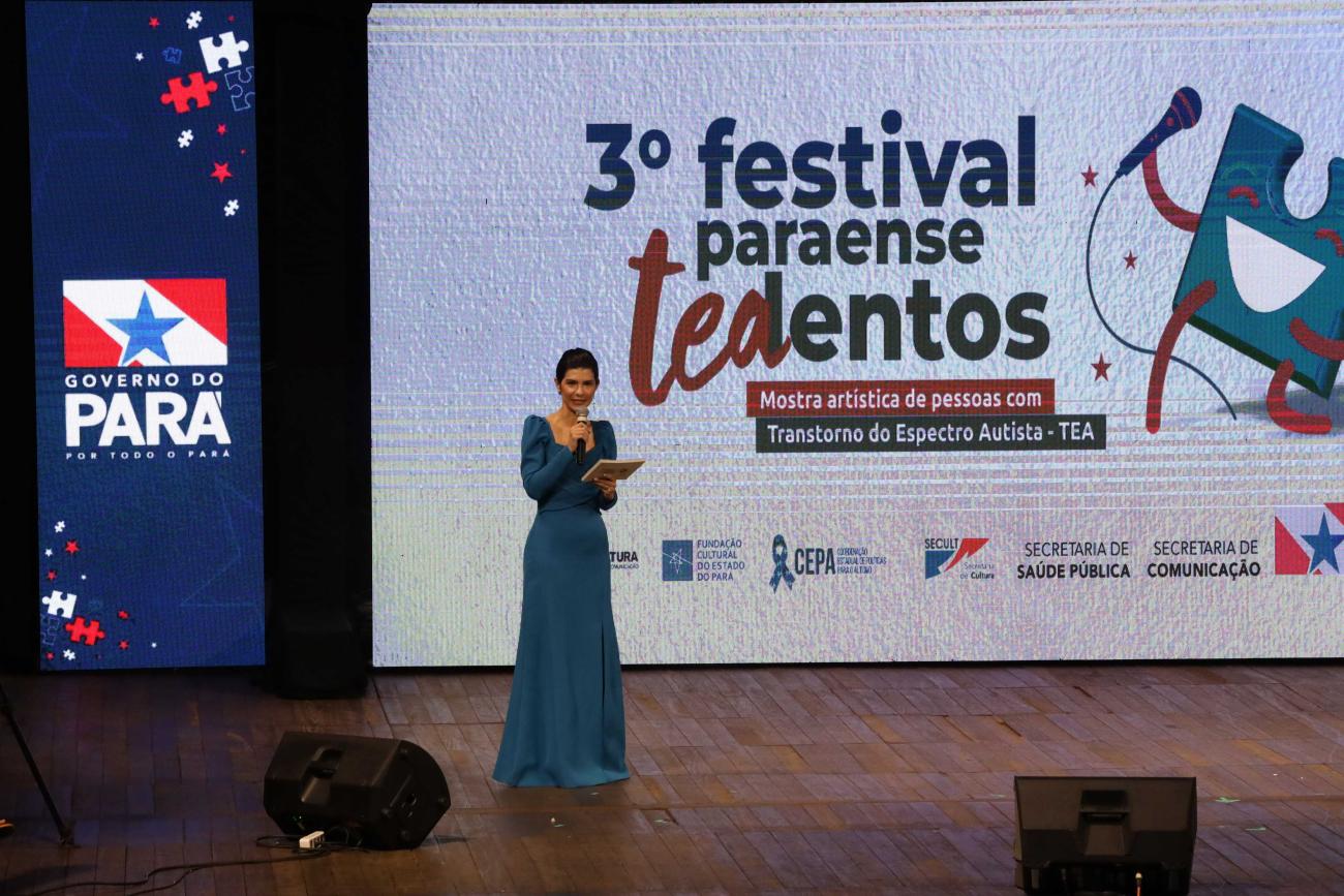 "Hoje estamos finalizando a terceira edição do Festival Tealentos que traz visibilidade para as habilidades artísticas de pessoas com TEA. Nós estamos no mês mundial de conscientização do autismo e esse é um projeto que foi crescendo, pois foi atendendo as expectativas do público. Nós entendemos que gerar visibilidade, participação social e cultural também é gerar saúde e isso é um trabalho que tem sido feito pelo Estado atuando em várias frentes", disse Nayara Barbalho, Coordenadora Estadual de Políticas para o Autismo (CEPA) da Sespa.