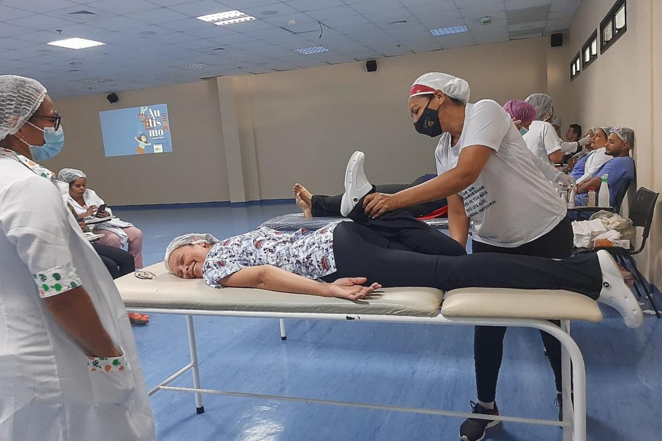 Para incentivar a prática do autocuidado físico e emocional, o Hospital Regional Dr. Abelardo Santos (HRAS), no distrito de Icoaraci, em Belém, promoveu uma série de ações relacionadas à atividade física e relaxamento para os profissionais da unidade na última segunda-feira (10). A programação contou com palestra sobre a importância da ginástica laboral durante a jornada de trabalho e momentos de cuidados com a equipe de voluntários da Rede de Solidariedade, que proporcionou ainda spa de pés e mãos, revitalização facial e massagem.