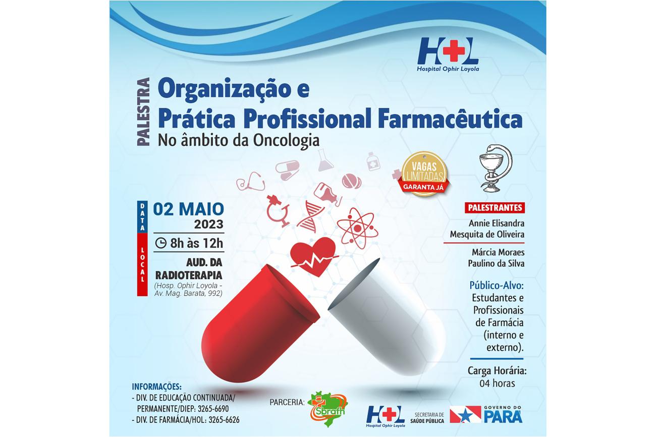 O Hospital Ophir Loyola (HOL) está com inscrições abertas para a palestra “Organização e Prática Profissional Farmacêutica no Âmbito da Oncologia", que ocorrerá no próximo dia 2 de maio, no auditório da radioterapia. A programação tem como público-alvo estudantes e profissionais de farmácia. As inscrições são gratuitas e devem ser feitas através do link.
