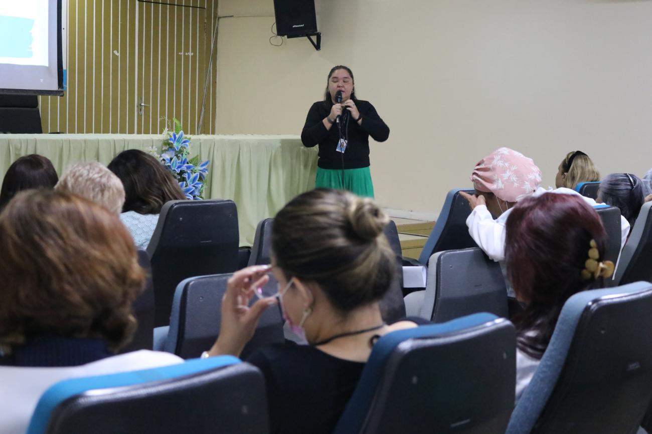 Marcella Takeshita, técnica previdenciária, formada em serviço social, tratou de assuntos relacionados à qualidade de vida na preparação para a aposentadoria, incluindo em sua fala os locais em que o servidor pode recorrer a fim de melhorar a qualidade de vida.