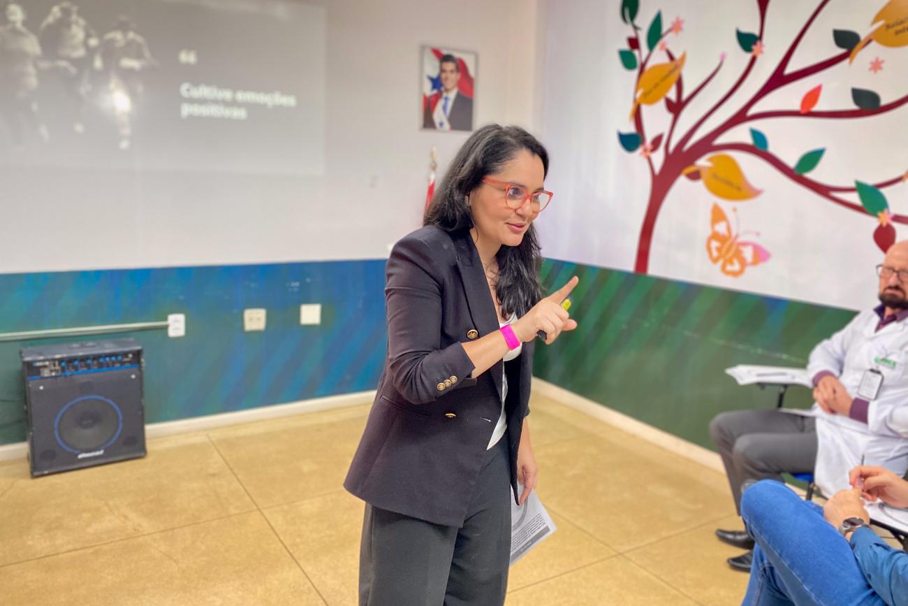 Médica Fabrícia Dias Maciel ministrou a palestraA médica Fabrícia Dias Maciel, especialista em Medicina do Estilo de Vida, ministrou a palestra “Estilo de Vida Saudável e o Impacto no Ambiente de Trabalho”. “Quem controla o nosso mundo é a nossa mente. É importante que dediquemos tempo para nossa própria vida, gerenciemos estresses, estejamos cercados de pessoas que tragam momentos saudáveis e nos remetam à felicidade. Isso se reflete no trabalho”, destacou Fabrícia Maciel.