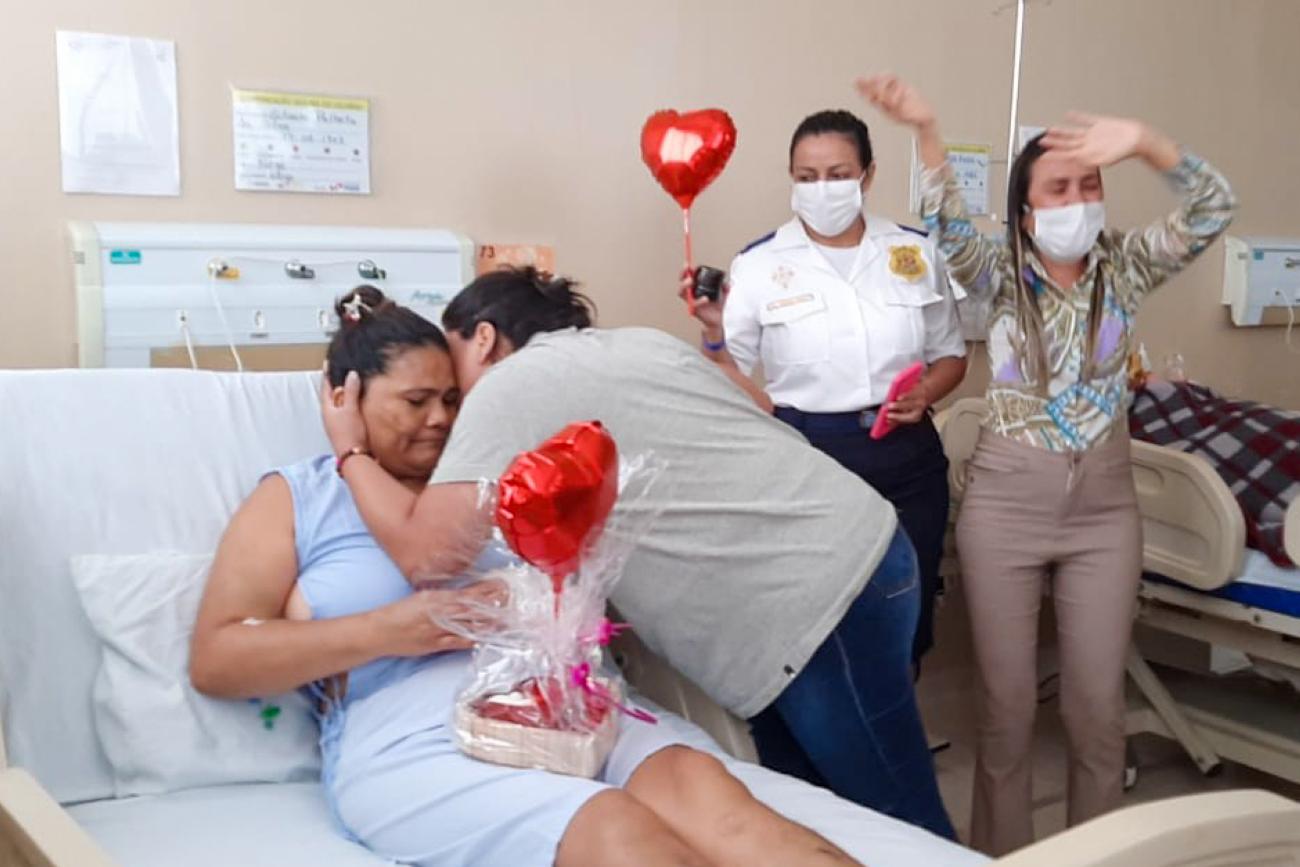 A alta deve sair em breve, mas, por enquanto, além do aniversário, Gilvani também vai passar o Dia das Mães longe da família e dos 4 filhos. Ou melhor, só de três. Isso porque a equipe do HPEG preparou uma surpresa para a paciente em parceria com uma das filhas.