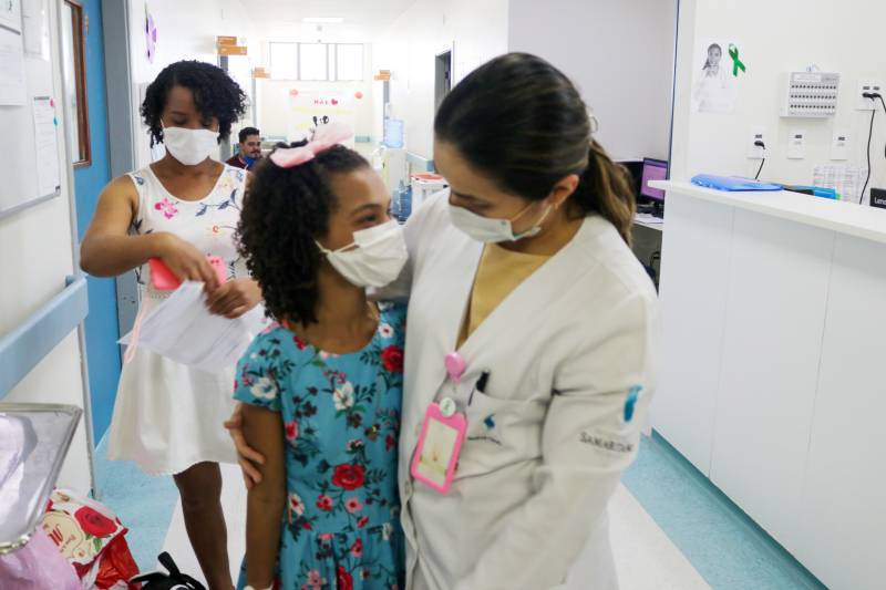 Sobre a alta médica de Samyra, a médica Cynara Zanquet Lisboa, especialista em transplante renal pediátrico, diz que é uma sensação de renovação de esperança, principalmente para a família e é um prazer muito grande para a equipe dar alta a essa paciente.