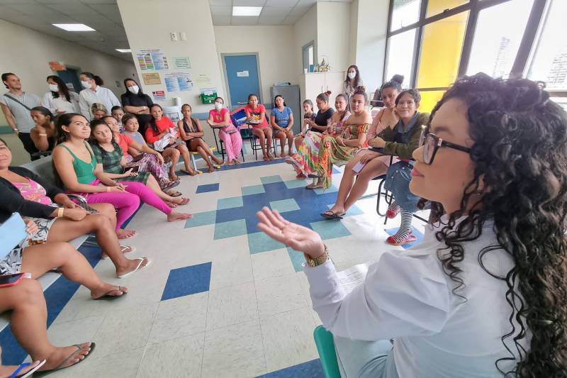Equipe da pediatria e mães na Fundação Santa Casa do ParáMaisy Tavares mora em uma das enfermarias pediátricas da Santa Casa do Pará há um ano e sete meses. Mãe de duas crianças, ela precisou deixar o restante da família para acompanhar a filha mais jovem, Sofya, que antes de completar dois anos teve o diagnóstico de uma doença rara e desde então está internada no hospital.