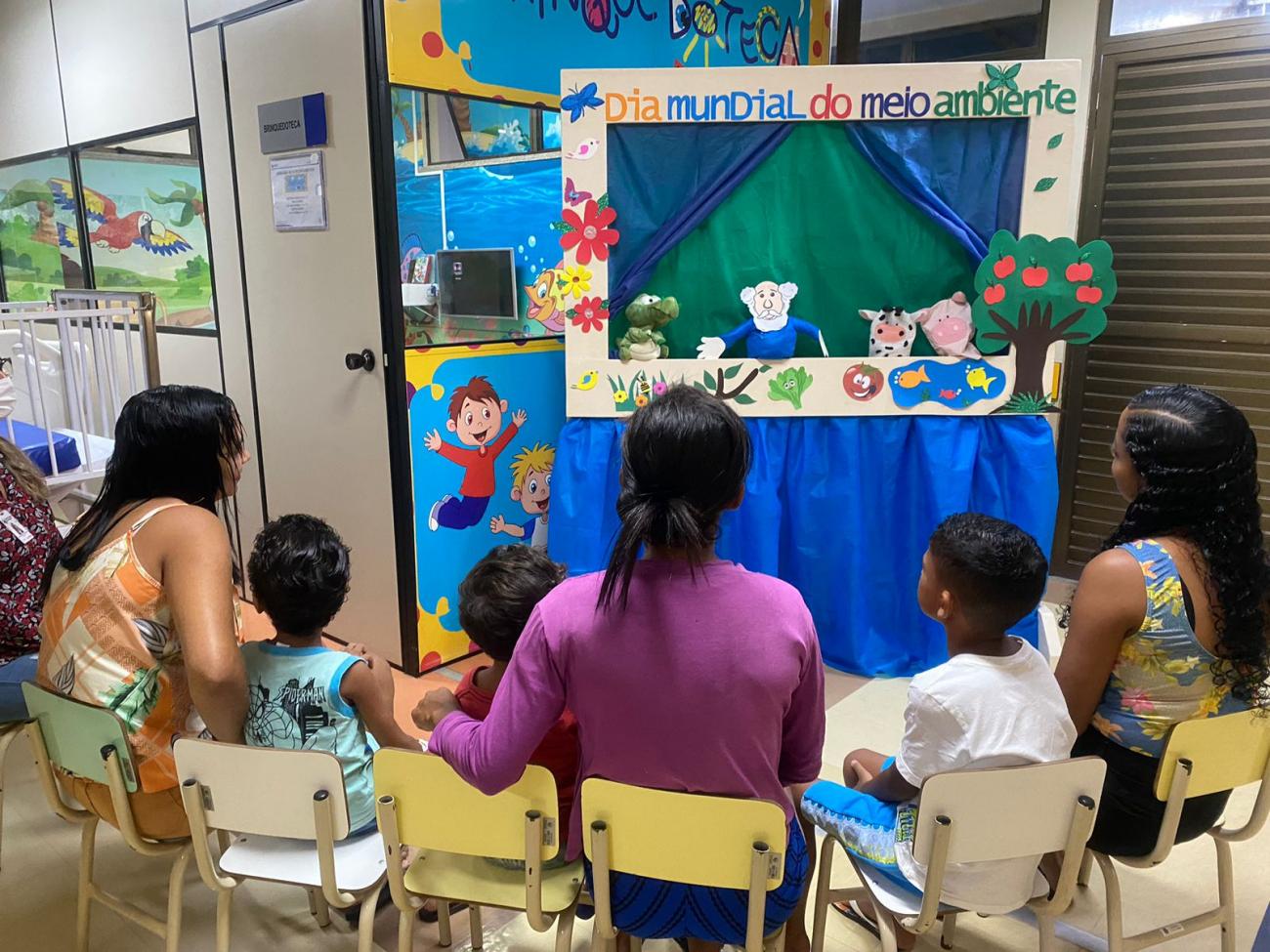 Teatro de fantoches abordou a temática ambiental para repassar conceitos de sustentabilidadeO teatro com fantoches mostrou às crianças, de forma lúdica, a importância de cuidar do meio ambiente. Os fantoches contaram histórias de ações sustentáveis realizadas na unidade hospitalar, e como elas preservam o meio ambiente.