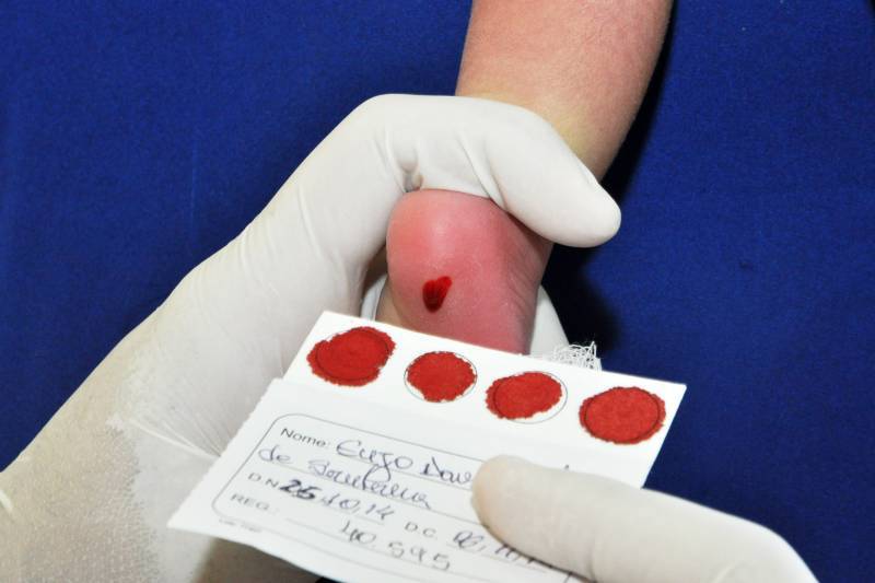 A coleta de amostra do sangue deve ser feita entre o 3º e o 5º dia após o nascimento nas maternidades ou unidades básicas de saúde