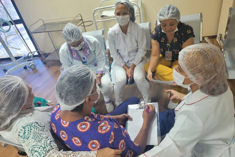 NEAS - Com o corpo laboral de ao menos 80% formado pela equipe assistencial, outra iniciativa criada pela unidade em julho de 2022, foi o Núcleo de Educação Assistencial (NEAS), que funciona como uma extensão do NEP dentro do HRAS. A enfermeira Jamilly Silva, responsável pelo setor, ressalta que núcleo trouxe um modelo de ensino mais significativo para a assistência. “Com isso, a nossa ideia é sempre trazer estratégias educacionais que rompa o aprendizado tradicional, como aulas expositivas, e que foque mais metodologias ativas, como simulações realísticas e estudos de casos, para que eles saiam do cenário de receptores de informações e se emponderem como atores reflexivos de suas práticas”, enfatizou.