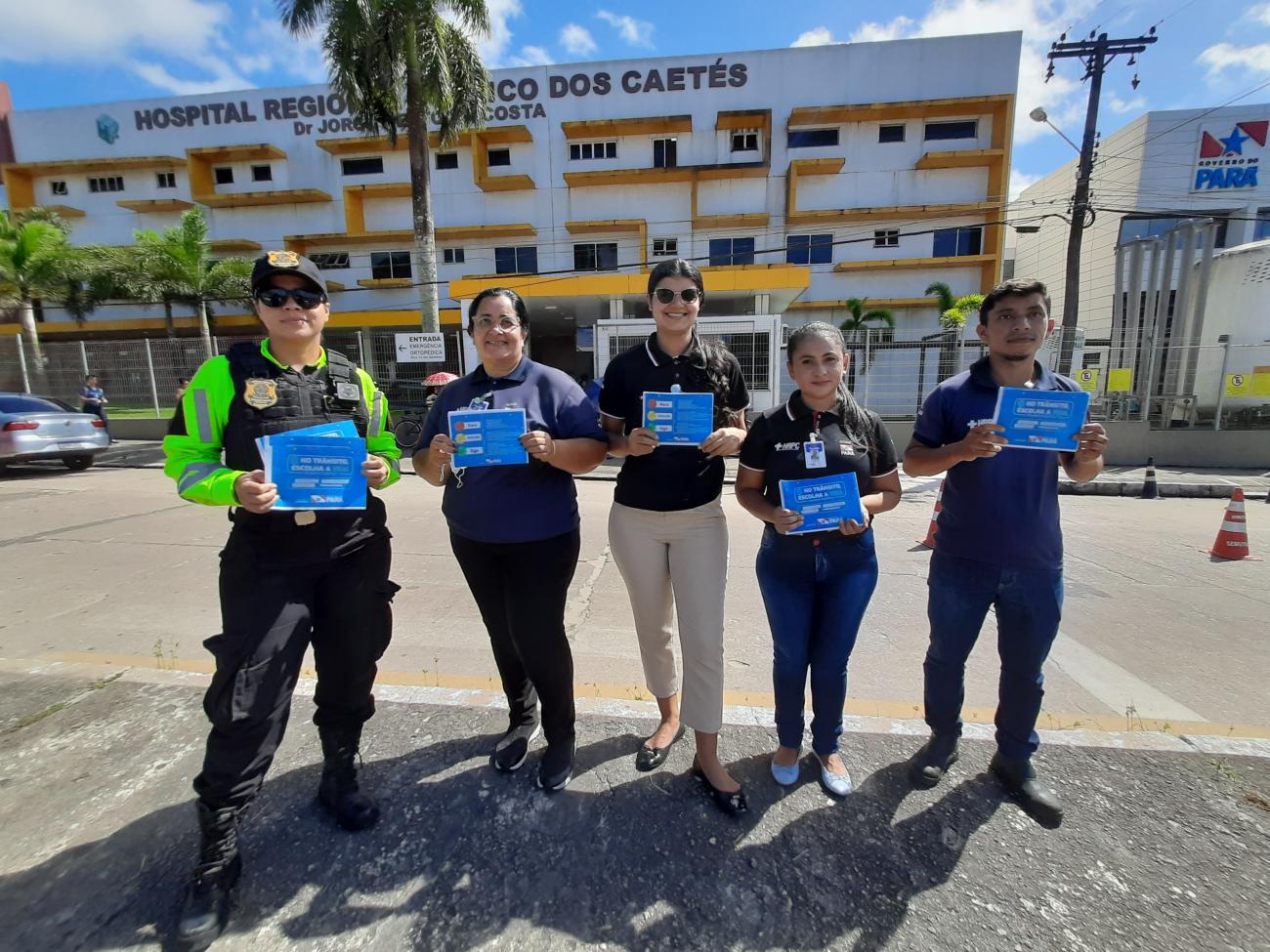O Hospital Regional Público dos Caetés (HRPC), em Capanema, na região de integração do Rio Caeté, realizou ação, na manhã desta sexta-feira (16), em parceria com a Secretaria Municipal de Trânsito (Semutran), a chamada “Blitz da Saúde”. A ação em frente à unidade hospitalar, referência em Ortopedia/Traumatologia, distribuiu panfletos e orientou para maior segurança no trânsito, tanto pedestres, ciclistas, quanto motociclistas e motoristas.