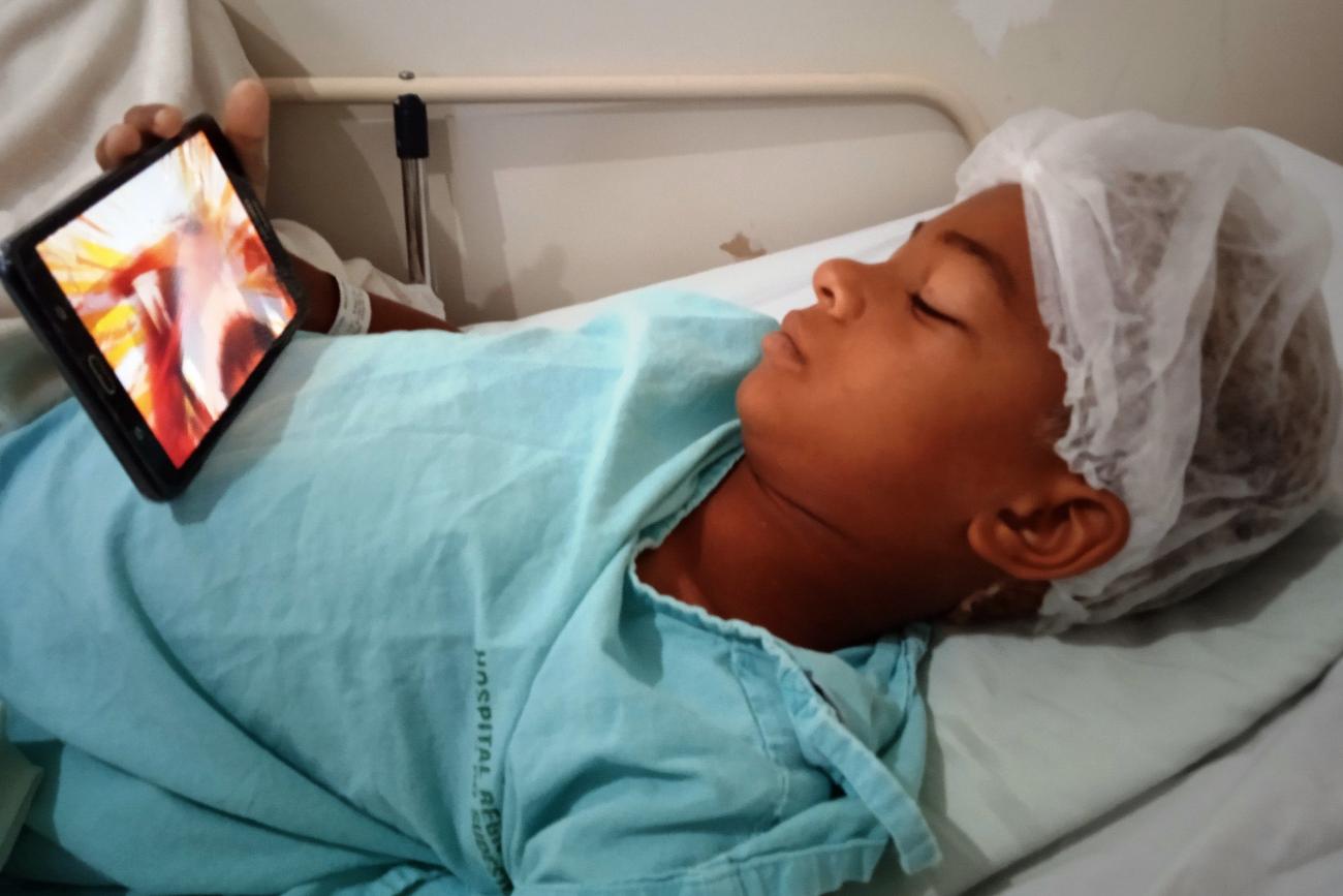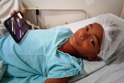 Kayron Sousa de Jesus, de 9 anos, natural de Abel Figueiredo, foi encaminhado à clínica pediátrica do HRSP para receber tratamento ortopédico, devido a um acidente de trânsito.