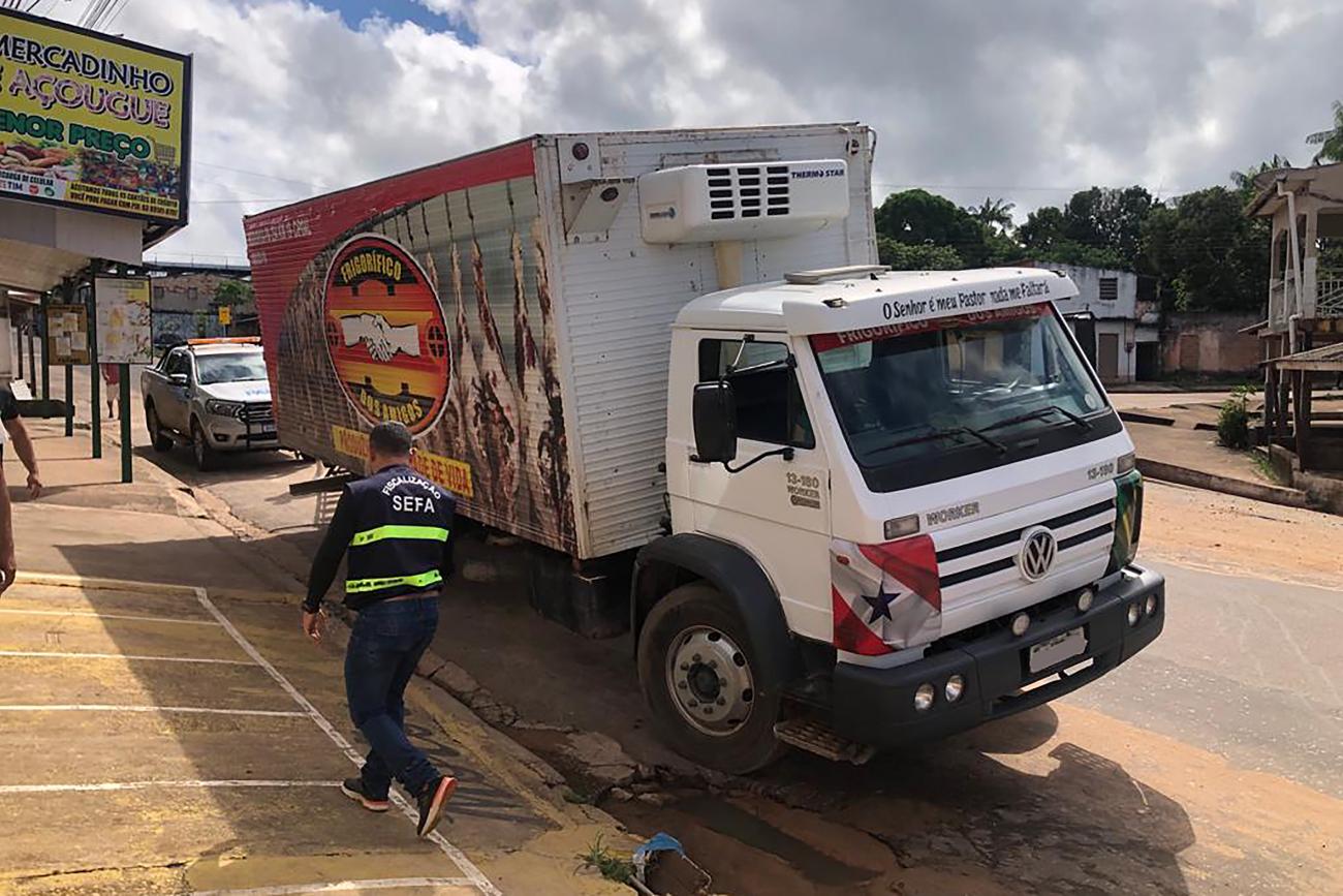 Fiscais da Sefa apreenderam o caminhão frigorífico, com a mercadoria, na rodovia PA-439, que liga os municípios de Óbidos a Oriximiná