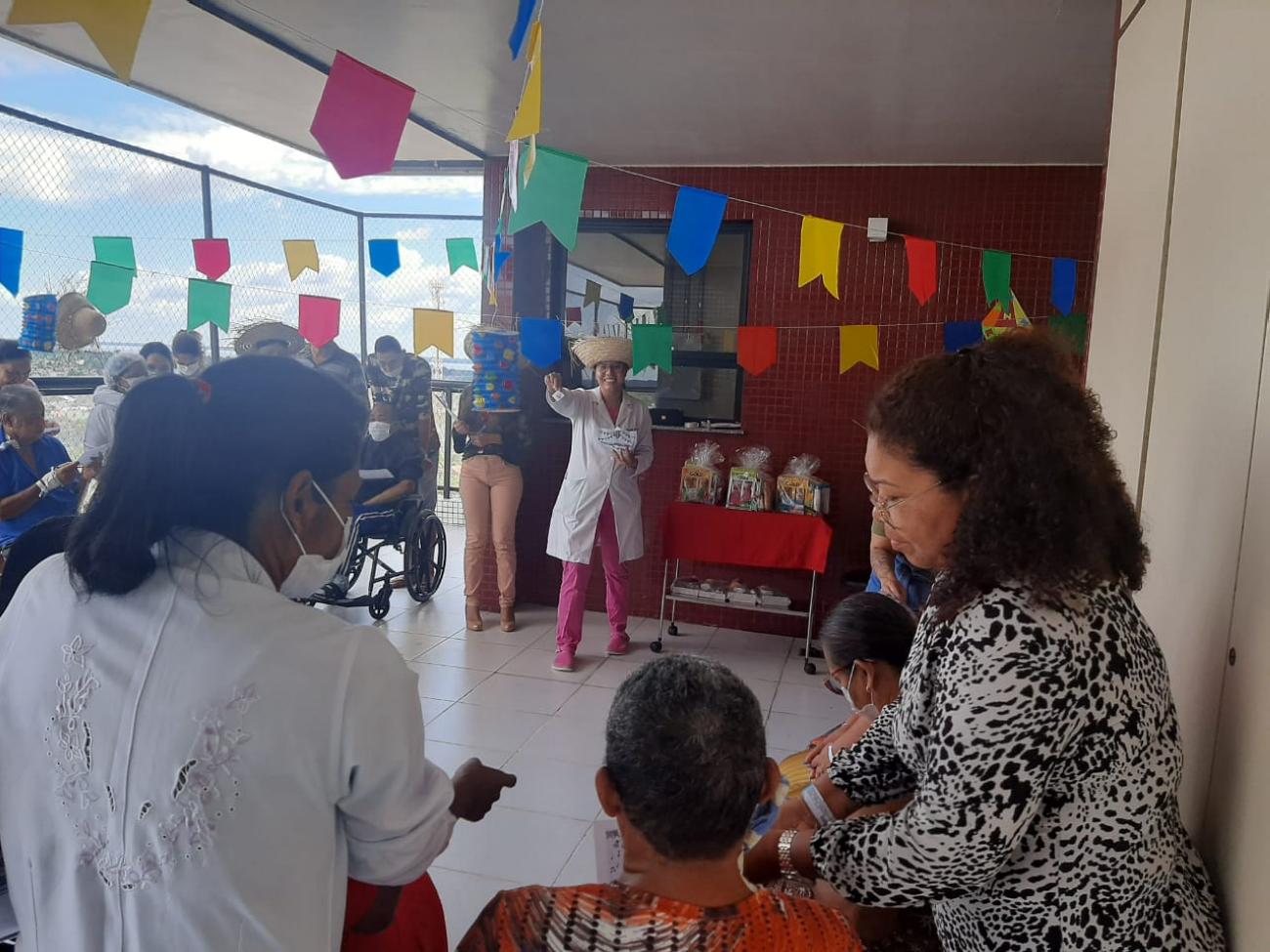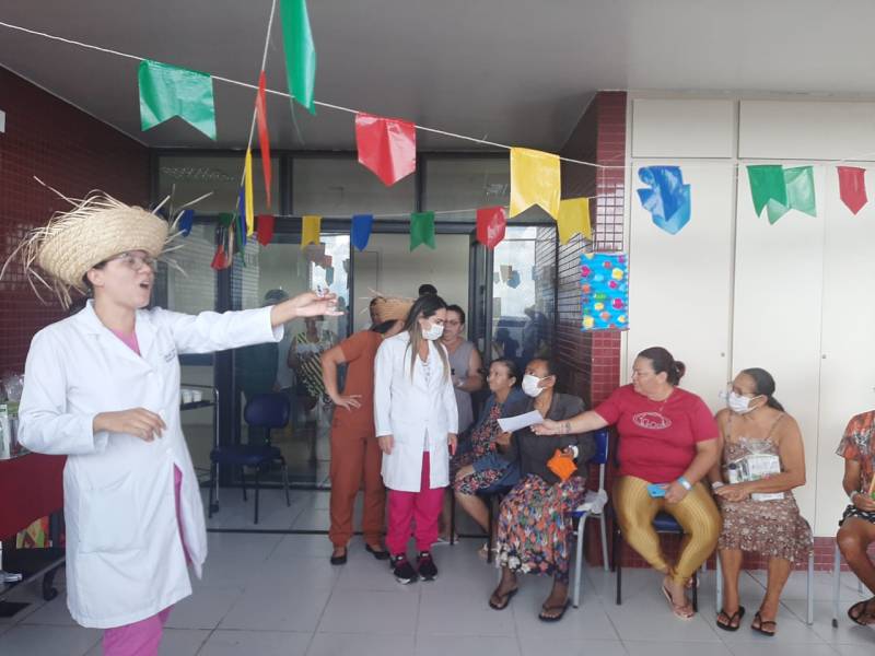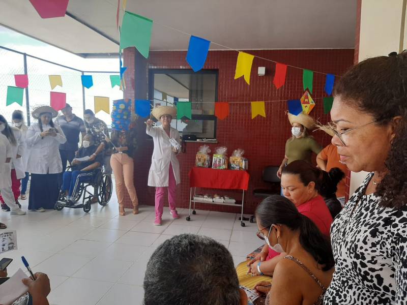 Programação com bingo, música, dança e lanche típico com mingau e bolo de milho, teve como objetivo levar um pouco do clima junino aos pacientes