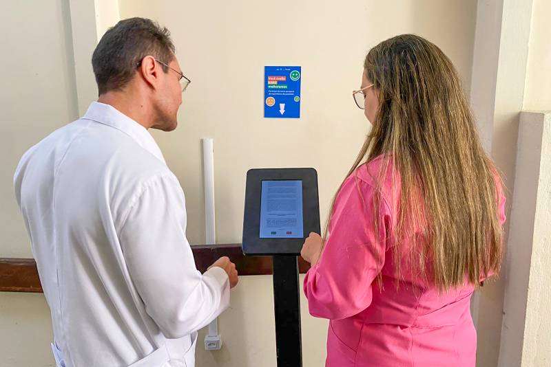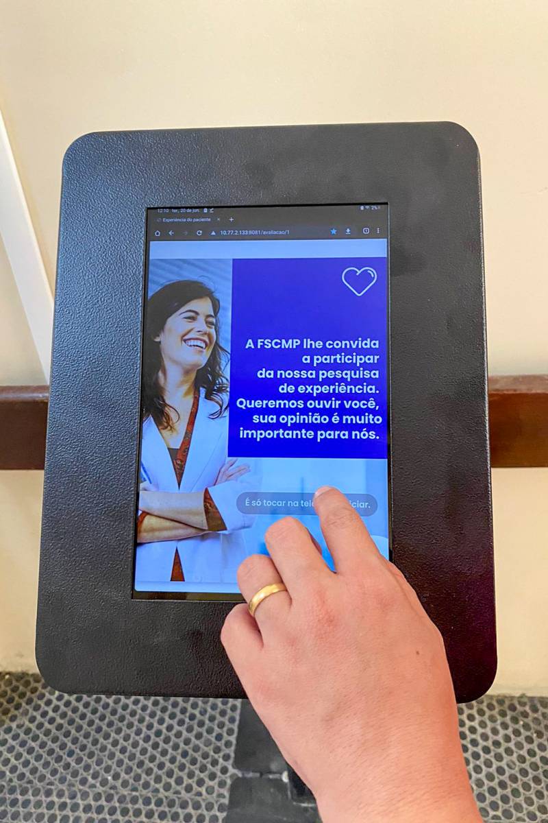 "Nossa opção foi por uma estratégia inovadora, inédita para o SUS, tecnológica e sustentável de medir a experiência do paciente através de uma pesquisa de autopreenchimento, ofertada ao paciente através de totens espalhados na instituição. Como vantagem dessa escolha, temos a já familiaridade com telas da maioria dos clientes, a rapidez de disponibilização para correção da informação obtida e da não geração de resíduos", ressalta a assessora.