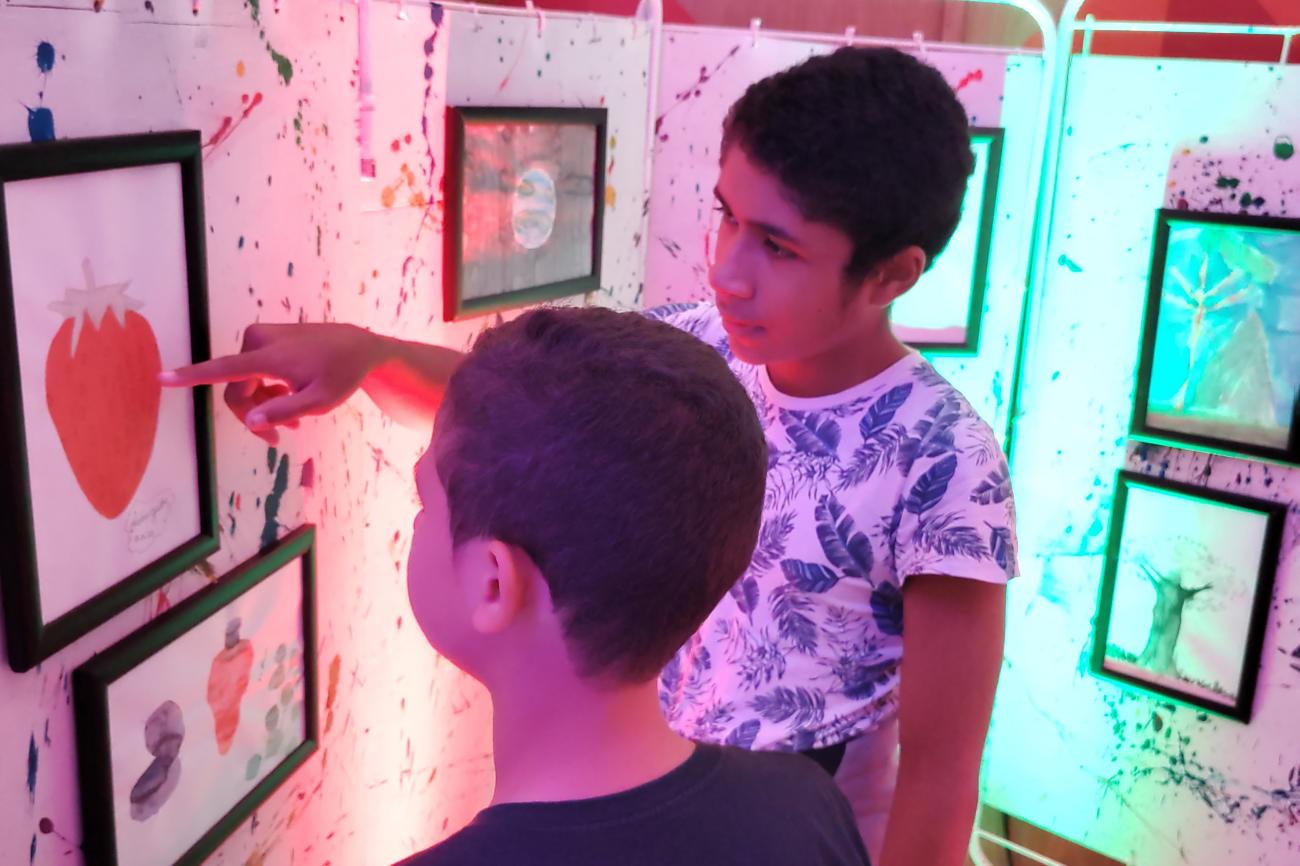 Acompanhado de sua mãe, um dos artistas na exposição, Cauã Mendonça, de 13 anos, diagnosticado com autismo, produziu a obra intitulada “Planeta” porque utilizou as cores frias que mais o agrada que são o verde e o azul. Claudiany Mendonça, de 42 anos, pontua a “Exposição de Arte Visual” como um estopim para o desenvolvimento intelectual de Cauã, além de estimular na interação social.