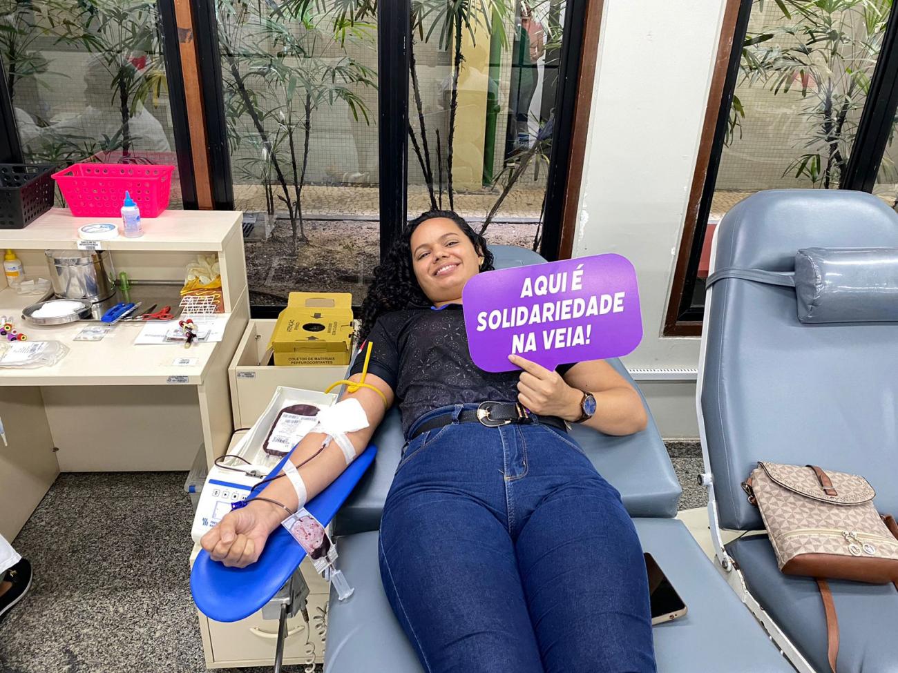 Josiellen Alves é servidora do TRE e doadora voluntária de sangue há 5 anos. Ela afirmou que se sente bem quando doa sangue. Para a servidora, a melhor forma de incentivar outros doadores é estar sempre disposto a acompanhar algum amigo ou familiar que nunca doou.