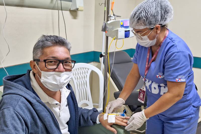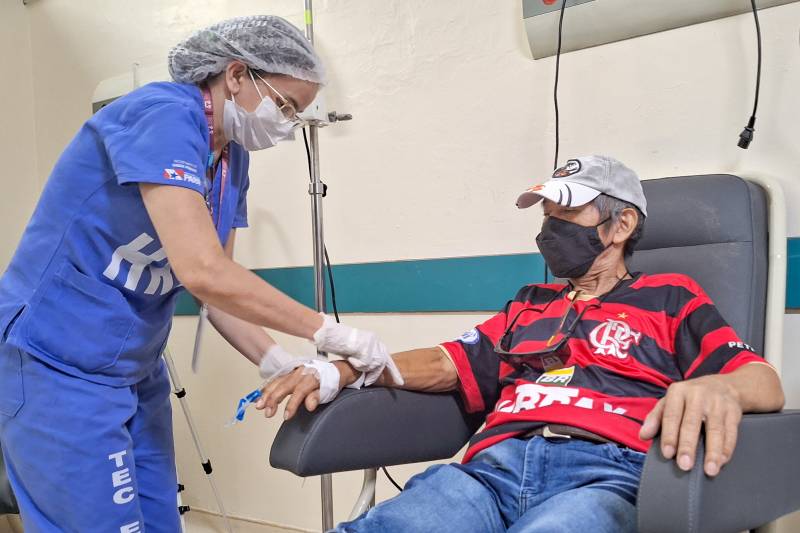 Manoel Araújo realiza sessões de quimioterapia a cada 15 dias, no Regional do Baixo Amazonas Dr. Waldemar Penna (HRBA)A rotina do Manoel Domingos Araújo, 68 anos, também é bem parecida. Ele é de Santarém e também realiza o tratamento com as sessões de quimioterapia. Para ele, a dedicação e atenção dos colaboradores fazem a diferença.