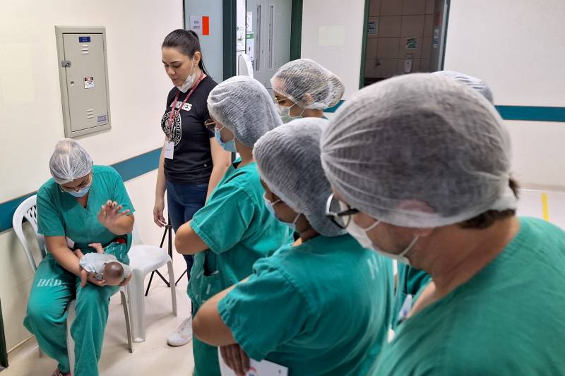 A técnica de enfermagem Maria Luciene Vieira Garcia trabalha no Hospital Regional do Baixo Amazonas Dr. Waldemar Penna (HRBA), em Santarém, no oeste do Pará, há mais de dez anos. Em todo esse tempo atuando nas Unidades de Terapia Intensiva (UTI) Neonatal e Pediátrica da unidade, ela nunca se deparou com um caso de um bebê ou criança se engasgando. Mas mesmo assim, prestou bastante atenção ao treinamento que foi ofertado nesta terça-feira (18), sobre como atuar em casos assim.