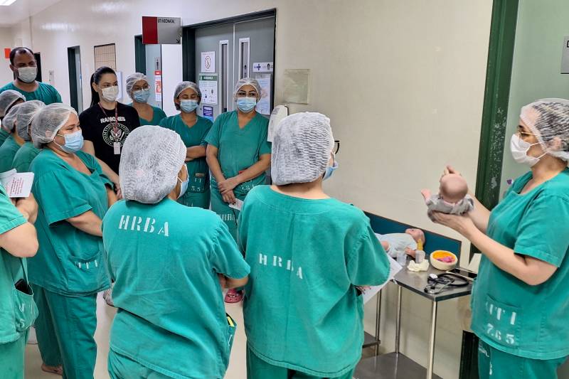 Maria Luciene e outros colaboradores que atuam nas UTIs do HRBA participaram da capacitação, uma iniciativa da gerência assistencial do hospital, em parceria com a equipe multiprofissional e o time de resposta rápida. Os profissionais foram apresentados a alguns casos em que bebês recém-nascidos ou crianças até 2 anos de idade podem sofrer engasgo, o que fazer nestas situações - utilizando a técnica de desengasgo chamada de Manobra de Heimlich – e, claro, como evitá-las.