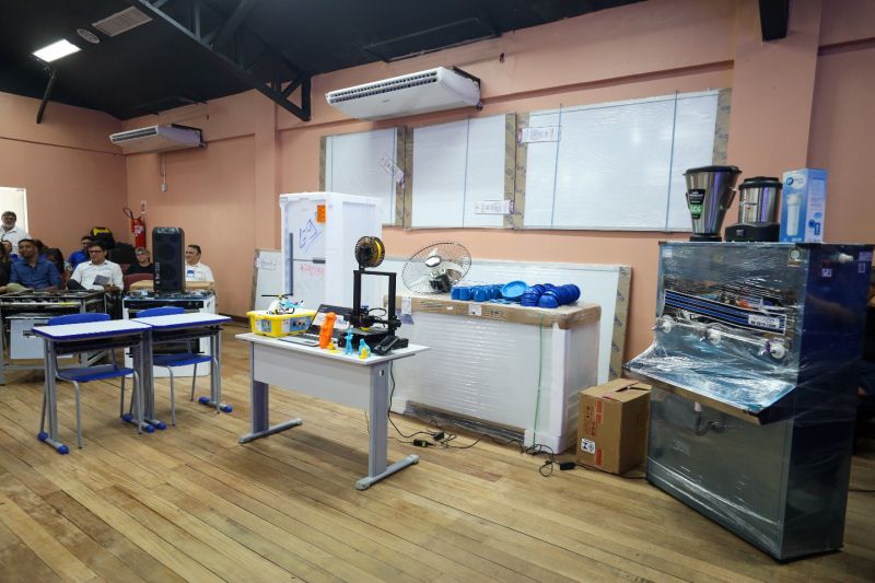 Cerca de 860 itens da linha branca foram repassados, nesta quarta-feira (19/07), às 35 Escolas de Ensino Técnico do Estado do Pará (Eetepa) durante a reunião de trabalho entre os diretores das escolas e a Secretaria de Estado de Ciência, Tecnologia e Educação Superior, Profissional e Tecnológica (Sectet). Da lista de equipamentos e mobiliários, foram entregues geladeiras, freezers, fogões industriais, impressoras 3D, ventiladores, caixas de som, retroprojetores e lousas, entre outros. O repasse foi feito aos diretores de todas as regiões do Pará, de forma híbrida. O encontro presencial aconteceu na Escola Técnica Anísio Teixeira, em Belém.